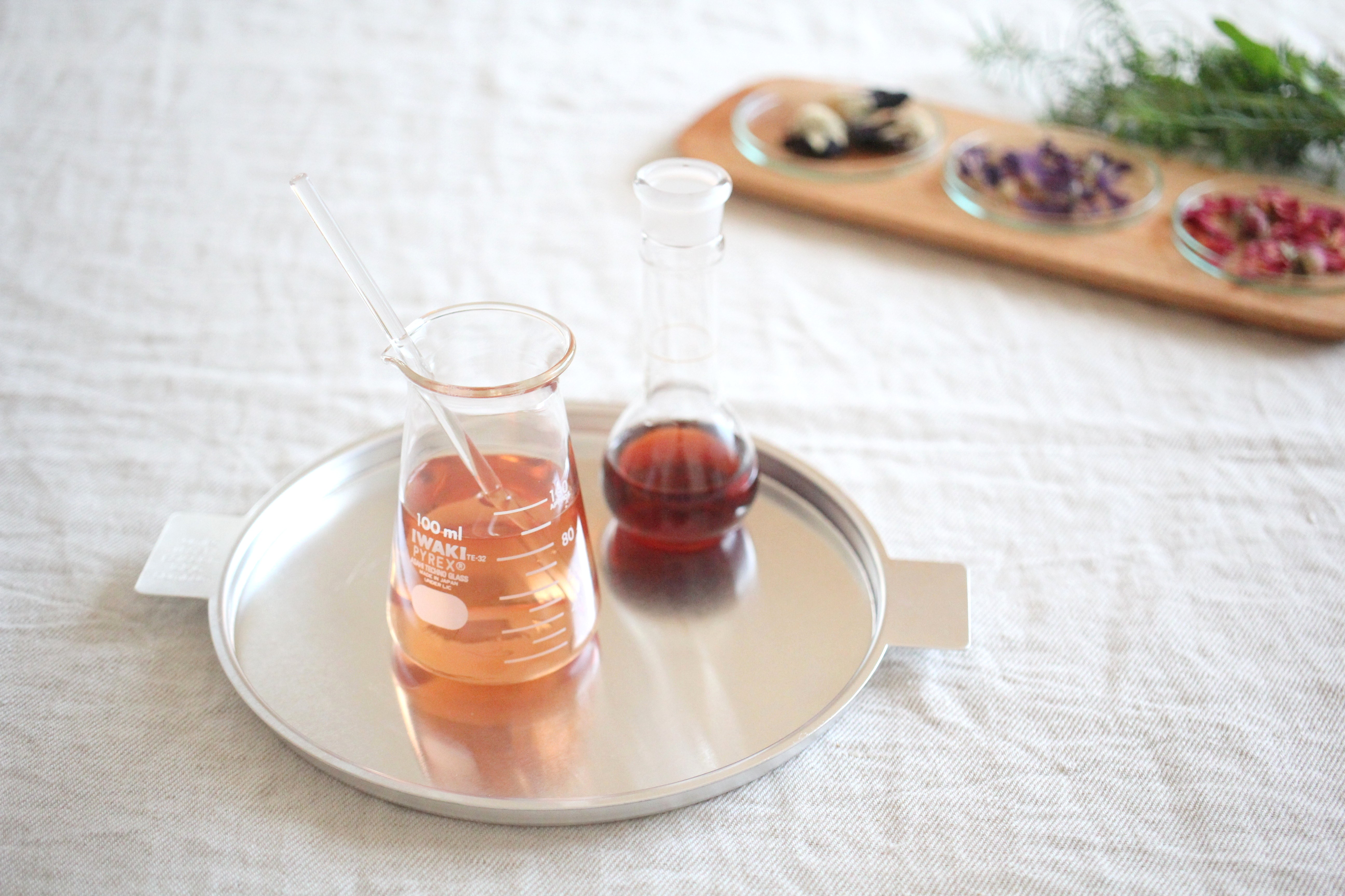 ハーブチンキ(植物色素)の抽出を学びます。他の教室にはない内容で、色と香りの掛け合わせがワークショップを唯一無二にします。